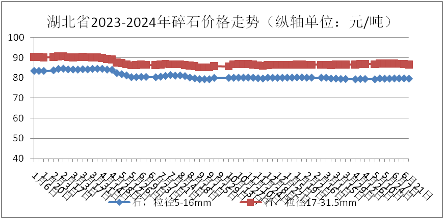 監(jiān)測(cè)數(shù)據(jù)顯示:6月份,碎石(粒徑5-16mm)、碎石(粒徑17-31.5mm)全省均價(jià)分別為79.73元/噸、86.86元/噸,環(huán)比分別:上漲0.15%、下跌0.21%;同比分別:下跌0.86%和上漲0.54%。具體價(jià)格走勢(shì)情況如下圖: