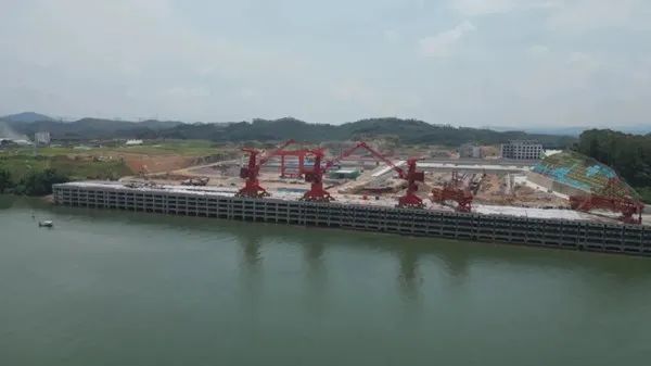 截至目前,該碼頭水工建筑物已完成全部八個結構段面板施工,附屬房建工程已完成主體結構施工,室內裝修工程正在抓搶施工中,堆場道路水穩層已完成63300平方米,進港大道水泥路面和平交口兩側道路拓寬已完成。