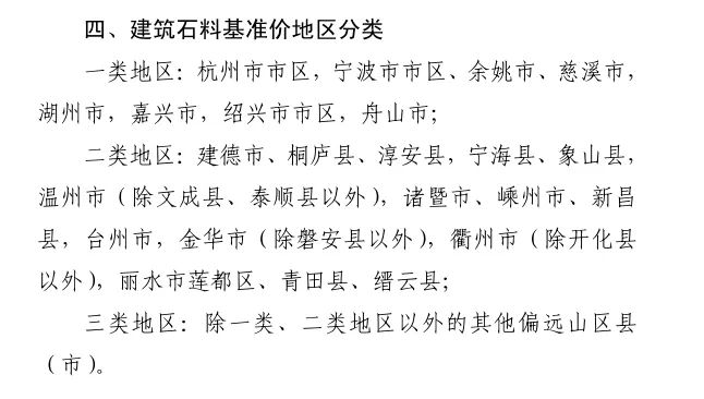 據悉,2018年浙江優質建筑用石料(玄武巖、輝綠巖、安山巖、閃長巖)基準價按照地區分為3類,一類5.3元/噸、二類4.4元/噸、三類3.2元/噸,平均4.3元/噸;一般建筑用石料(石灰巖、白云巖、砂巖、花崗巖、凝灰巖、大理巖)基準價按照地區分為3類,一類3.5元/噸、二類2.7元/噸、三類2元/噸,平均2.7元/噸;建筑用砂出讓基準價4.6元/噸(天然砂)。(注:下附出讓基準價表格)