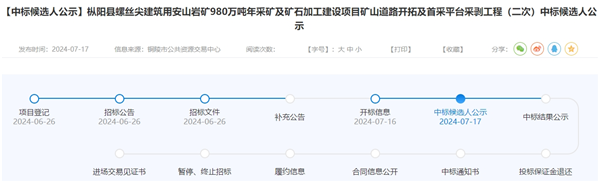 除了推進麻布山項目出讓工作外,樅陽南方黃公山年產2000萬噸項目、玄武新材螺絲尖年產980萬噸項目以及玉龍石料玉龍礦山200萬噸等3個大中型砂石礦山加速建設。