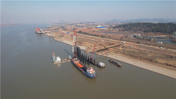 黃岡武穴港區多式聯運工程項目總投資近36億元,包含鐵路專用線工程和綜合碼頭工程。其中,鐵路專用線線路全長18.37千米,綜合碼頭工程位于田鎮港區馬口作業區,新建6個5000噸級泊位,其中4個散貨泊位、2個通用泊位。