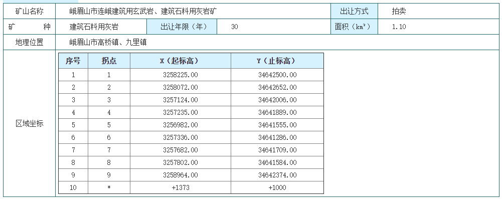 該礦擬設生產規模220萬立方米/年,出讓年限為30年,出讓起始價人民幣33837.72萬元。