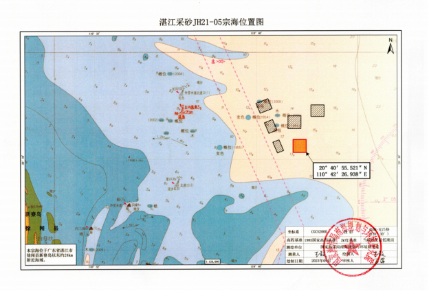 JH21-04區塊:海砂資源儲量705.25萬方,可采資源量563萬方,出讓年限為2年2個月,掛牌起始價:25533.08萬元,單價約為:36.2元/方。