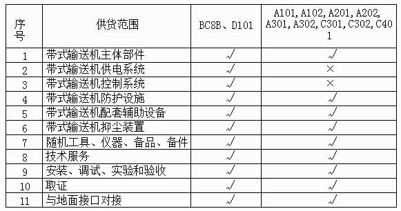 2.3.2 A101、A102、A201、A202、A301、A302、C301、C302、C401 共 9 條帶式輸送機(jī)交貨時(shí)間, 承包方接到發(fā)包方開(kāi)始建造的書(shū)面通知后 240 個(gè)日歷日內(nèi)交貨驗(yàn)收(即交鑰匙)。