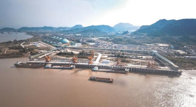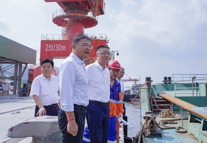黃石市委副書(shū)記、市長(zhǎng)吳之凌(前排左二)調(diào)研富池綜合碼頭項(xiàng)目建設(shè)情況