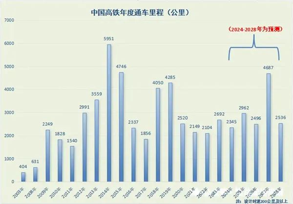 從在建項目規模來看,高鐵的占比接近八成,高鐵建設目標較易達成,因此高鐵項目前期工作緩慢也易理解,預計再過三四年,高鐵建設將進入低谷期;