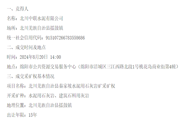 500萬(wàn)噸/年!中聯(lián)水泥4.7元/噸競(jìng)得四川一石灰?guī)r礦