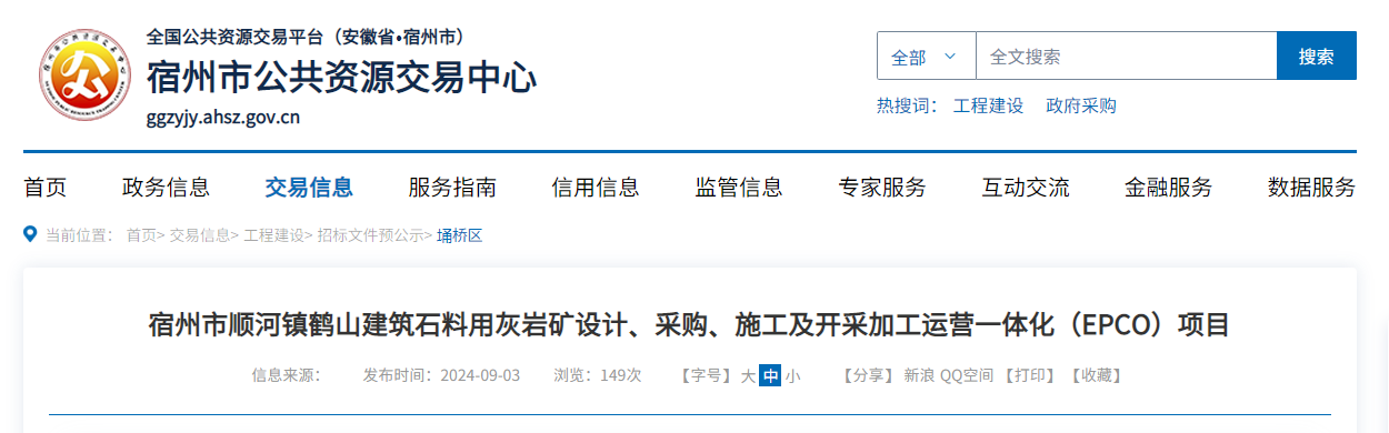 綜合單價(jià)22元/噸!總投資7.5億元!安徽宿州年產(chǎn)950萬(wàn)噸砂石礦EPCO項(xiàng)目招標(biāo)