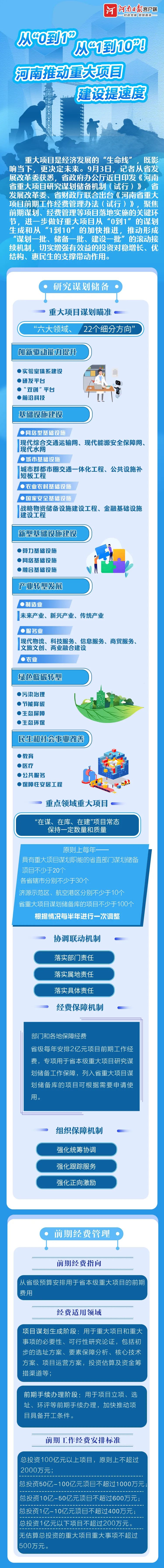 重大項目是經(jīng)濟發(fā)展的“生命線”,既影響當(dāng)下,更決定未來。9月3日,記者從省發(fā)展改革委獲悉,省政府辦公廳近日印發(fā)《河南省重大項目研究謀劃儲備機制(試行)》(以下簡稱《機制》),進一步做好重大項目“0到1”的謀劃生成和“1到10”的加快推進,推動形成“謀劃一批、儲備一批、建設(shè)一批”的滾動接續(xù)機制,切實增強有效益的投資對穩(wěn)增長、優(yōu)結(jié)構(gòu)、惠民生的支撐帶動作用。