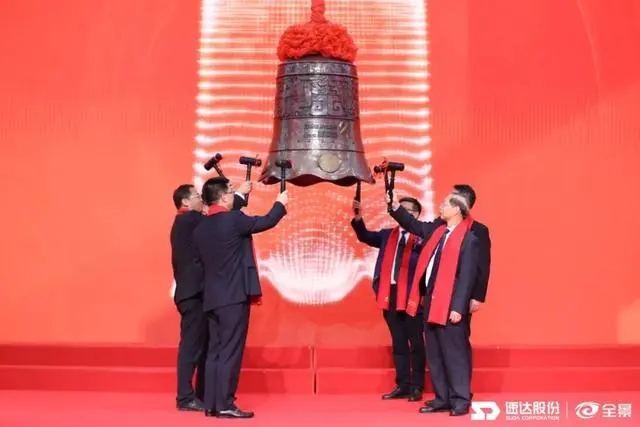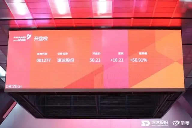 9月3日9時(shí)25分,上市寶鐘敲響,速達(dá)股份正式登陸深市主板,股票代碼為“001277”,開盤股價(jià)50.21元/股,漲幅為56.91%,企業(yè)總市值38億元。