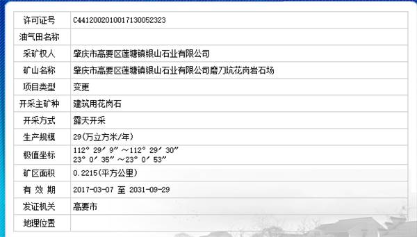二、肇慶市高要區蓮塘鎮銀山石業有限公司