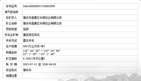 一、肇慶市高要區長順石業有限公司