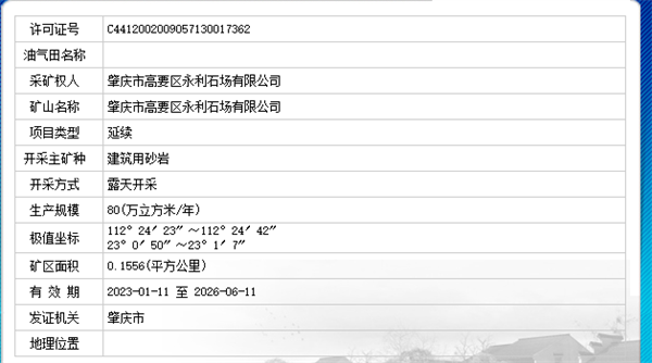 據悉,4宗砂石礦已于9月4日關閉,采礦許可證均有肇慶市自然資源局(高要分局)頒布。其中,最早頒發采礦許可證的2宗砂石礦可追溯到2017年,1宗開采有效期至2025年,另外1宗為2031年;另外2宗采礦許可證在2023年頒發,開采有效期均為2026年。