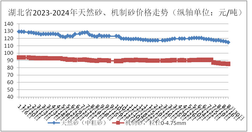 據(jù)了解,湖北省價格監(jiān)測中心發(fā)布8月份湖北市場天然砂、機(jī)制砂、碎石價格。據(jù)監(jiān)測數(shù)據(jù)顯示:8月份,天然砂(中粗砂)、機(jī)制砂均價分別為116.19元/噸、85.72元/噸,碎石(粒徑5-16mm)、碎石(粒徑17-31.5mm)全省均價分別為77.97元/噸、85.54元/噸。