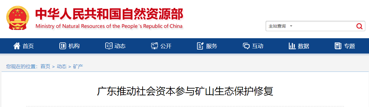 近日,廣東省自然資源廳印發《關于開展社會資本參與礦山生態保護修復試點工作的通知》,明確各試點縣(市、區)要在今年12月底前完成修復協議和土地出讓合同等自然資源資產配置協議簽訂工作,推動社會資本參與礦山生態保護修復。