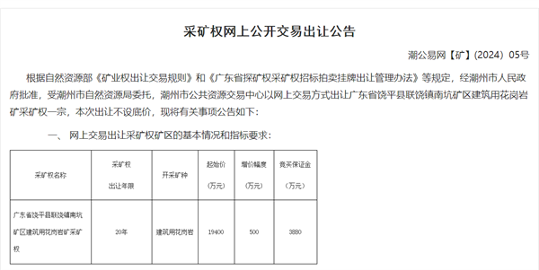 6.2元/方!南坑礦區建筑用花崗巖礦掛牌