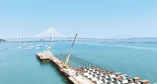 陽江港海陵灣港區(qū)豐頭作業(yè)區(qū)碼頭建設(shè)現(xiàn)場(chǎng)。