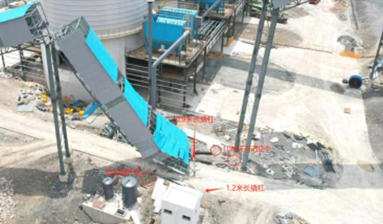 另3條廊道分別為104BC01、104BC02、104BC03,共計1557.25米,在設計規劃中。事故項目坍塌廊道為104BC03,長147.67米,分為5段。坍塌廊道為②-③軸段,長24.169米,②軸立柱高17.29米,③軸立柱高23.448米。廊道剖面尺寸為寬4米x高2.6米,鋼質材料,主要用于物料輸送。