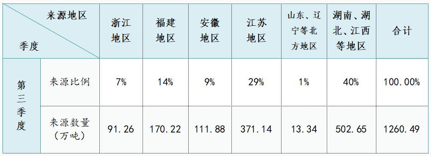3、從2024年三季度本市建設用砂來源于進滬運輸便捷的長江沿線地區(qū)和同樣具備內(nèi)河和海運條件的砂源交易聚集地江蘇,其中湖南、湖北、江西等其他地區(qū)占比最高,達40%,江蘇地區(qū)(含經(jīng)江蘇地區(qū)交易)占29%,福建地區(qū)占14%,安徽地區(qū)占9%,浙江地區(qū)占7%,山東、遼寧等北方地區(qū)供應已經(jīng)很少。