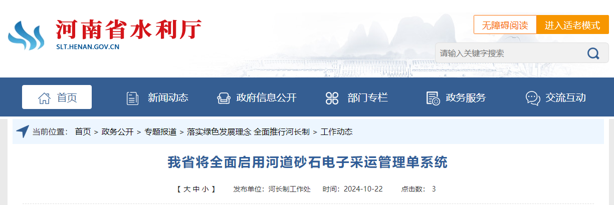 近日,河南省河長制辦公室印發《關于啟用河南省河道砂石電子采運管理單系統的通知》,自2024年11月1日起,全省將全面啟用河道砂石電子采運管理單系統,標志著河南省河道采砂管理進入標準化、精細化監管階段。