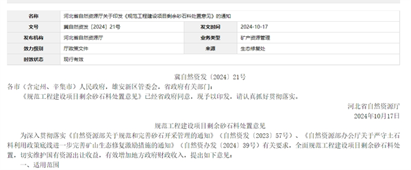 據(jù)悉,該規(guī)范所稱工程建設(shè)項(xiàng)目剩余砂石料,是指經(jīng)批準(zhǔn)設(shè)立的能源、交通、水利三類基礎(chǔ)設(shè)施、線性工程等建設(shè)項(xiàng)目,按照批準(zhǔn)的建設(shè)方案及其工程設(shè)計(jì)施工方案等,在依法批準(zhǔn)的建設(shè)項(xiàng)目用地(不含臨時(shí)用地)范圍內(nèi),進(jìn)行掘進(jìn)、平整和削坡減荷等因工程施工行為而產(chǎn)生的,有利用價(jià)值的,除該工程建設(shè)自用以外的砂石料。