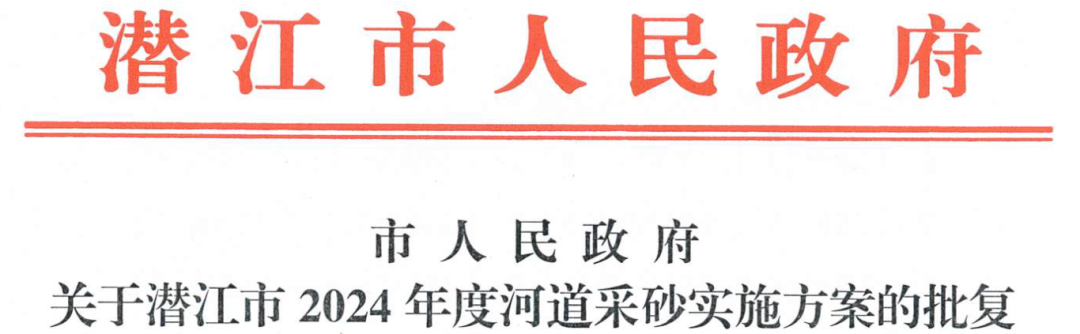 近日,湖北省潛江市人民政府對市水利和湖泊局《關于報批〈潛江市 2024 年度河道采砂實施方案〉的請示》作出批復,為該市河道采砂工作繪制了清晰藍圖。