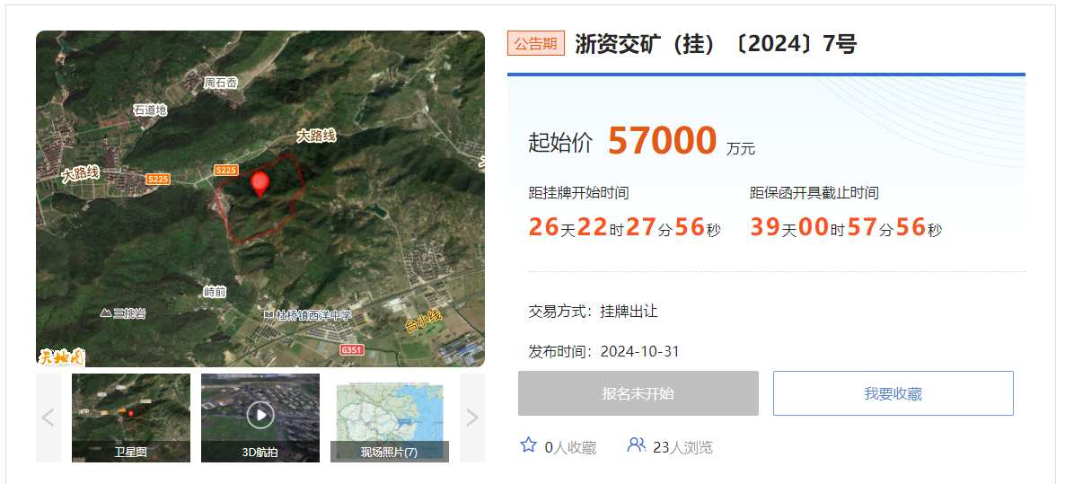 近日,浙江省臨海市杜橋鎮福岙村建筑用石料(凝灰巖)礦采礦權掛牌出讓,礦區范圍內出讓控制資源量4531.628萬噸,宕渣278.447萬噸,殘破基層剝離量67.216萬立方米,擬出讓年限5年,生產規模980萬噸/年,起始價5.7億元。