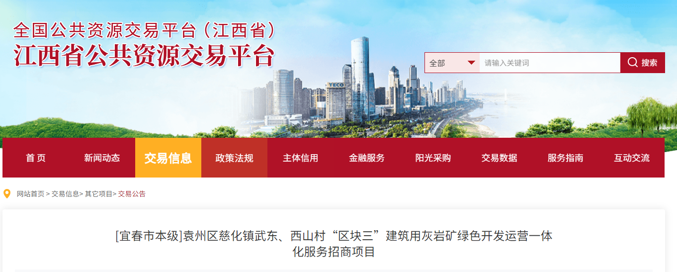 據(jù)了解,近日,江西省宜春市贛慈礦業(yè)發(fā)展有限公司(以下簡稱贛慈礦業(yè))公開招商慈化鎮(zhèn)武東、西山村“區(qū)塊三”年產(chǎn)500萬噸建筑用灰?guī)r礦綠色開發(fā)運(yùn)營一體化服務(wù)項(xiàng)目。礦區(qū)總儲量25463.49萬噸,可采儲量顯示為15397.84萬噸,招商控制價底價8 .03元/噸,礦山開采及砂石加工服務(wù)期限為20年+9年。