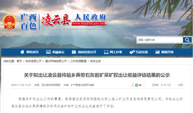 日前,廣西百色市凌云縣自然資源局擬出讓凌云縣伶站鄉弄勞石灰巖礦采礦權,該礦區范圍內建筑石料用灰巖礦保有推斷資源量8974.32萬噸,評估利用可采儲量5496.78萬噸,原礦生產規模300萬噸/年,評估計算服務年限18.32年,評估價值為8058.38萬元。
