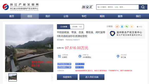 根據公告,該項目報名時間為2024年12月17至2024年12月23日下午5時止。成交后,競得人需在競價成交之日起60個工作日內一次性支付全部費用,具體以《平陽縣順溪、帶溪、岳溪、青街溪、鬧村溪等5條河道疏浚砂石資源經營權轉讓合同》約定為準。