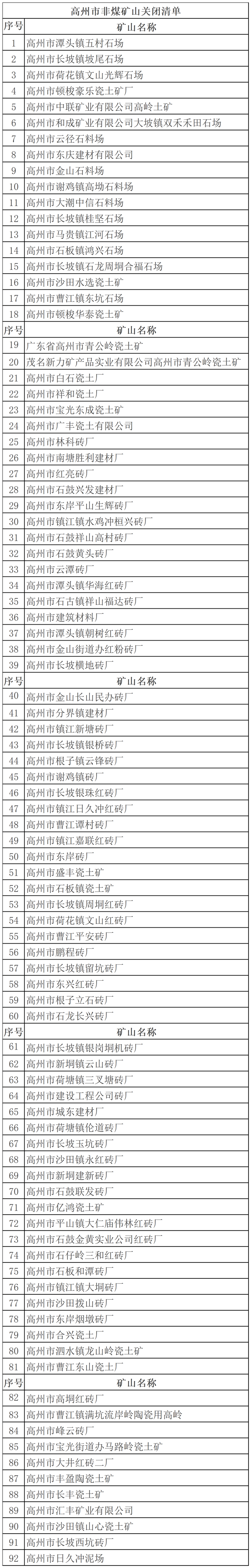 12月24日,廣東省茂名市高州市人民政府發布關于依法關閉高州市潭頭鎮五村石場等92個礦區的通告。 據悉,為進一步推進高州市非煤礦山綜合整治,規范非煤礦山開采和管理秩序,根據《中華人民共和國礦產資源法》《中華人民共和國行政許可法》《礦產資源開采登記管理辦法》《自然資源部關于進一步完善礦產資源勘查開采登記管理的通知》(自然資規〔2023〕4號)以及《高州市人民政府關于印發<高州市非煤礦山“三個一批”(2023-2026)工作方案>的通知》(高府函〔2023〕120號)等文件精神,經市人民政府研究,決定依法對高州市潭頭鎮五村石場等92個礦區予以關閉,不再納入非煤礦山管理。