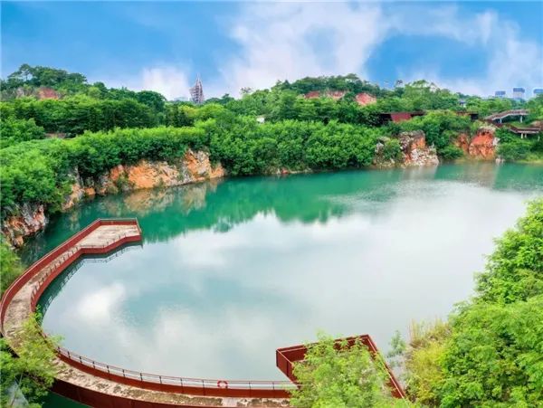 實施歷史遺留礦山生態修復,打造城市“礦坑花園”。圖為南寧園博園臥虎潭