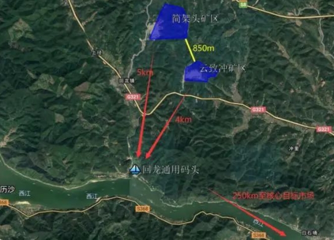 礦區(qū)距西江配套碼頭直線距離約5公里,沿西江順流而下可覆蓋粵港澳大灣區(qū)核心市場(chǎng),水運(yùn)交通便利。