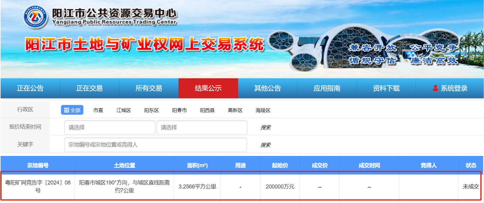 近日,廣東省陽江市陽春市輪崗礦區建筑用花崗巖礦采礦權因無人報價而流拍。