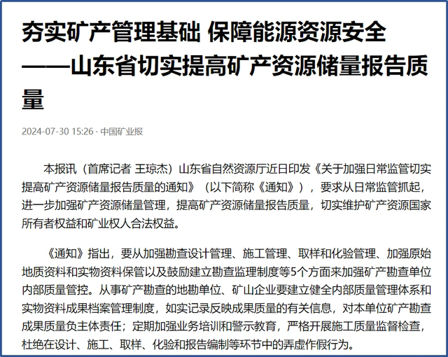 《中國礦業報》報道我省切實提高礦產資源儲量報告質量
