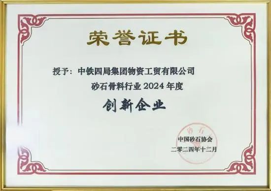 近日,中鐵四局物資公司在砂石及裝備行業(yè)取得了顯著成就,榮獲中國砂石協(xié)會頒發(fā)的2024年度“創(chuàng)新企業(yè)”榮譽(yù)證書。同時(shí),公司副總經(jīng)理劉海林也被授予砂石骨料行業(yè)“綠色發(fā)展先鋒人物”稱號。這一榮譽(yù)不僅彰顯了物資公司在砂石領(lǐng)域的創(chuàng)新實(shí)力和技術(shù)領(lǐng)先地位,也標(biāo)志著公司在推動砂石板塊高質(zhì)量發(fā)展上取得了新的突破。