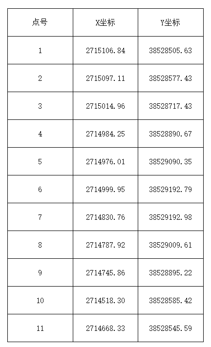 礦區范圍:礦區面積0.2061平方公里,擬開采標高為+853m至+650m。由11個拐點圈定,拐點坐標詳見下表(2000國家大地坐標系):