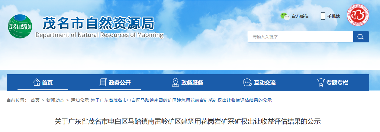 近日,廣東省茂名市自然資源局發布電白區馬踏鎮南雷嶺礦區建筑用花崗巖礦采礦權出讓收益評估報告書,報告摘要顯示,該礦區花崗巖資源儲量2428.38萬方,可采儲量2325.1萬方,年產花崗巖150萬方,服務年限17年8個月(含基建期2年),評估價值為23552.08萬元。