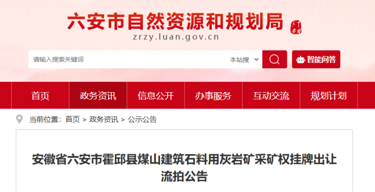 2月14日,安徽省六安市自然資源局發布公告表示,因安徽省六安市霍邱縣煤山建筑石料用灰巖礦采礦權掛牌出讓項目截止報價前無競買人報價,根據《競買須知》掛牌成交原則規定,該項目流拍。