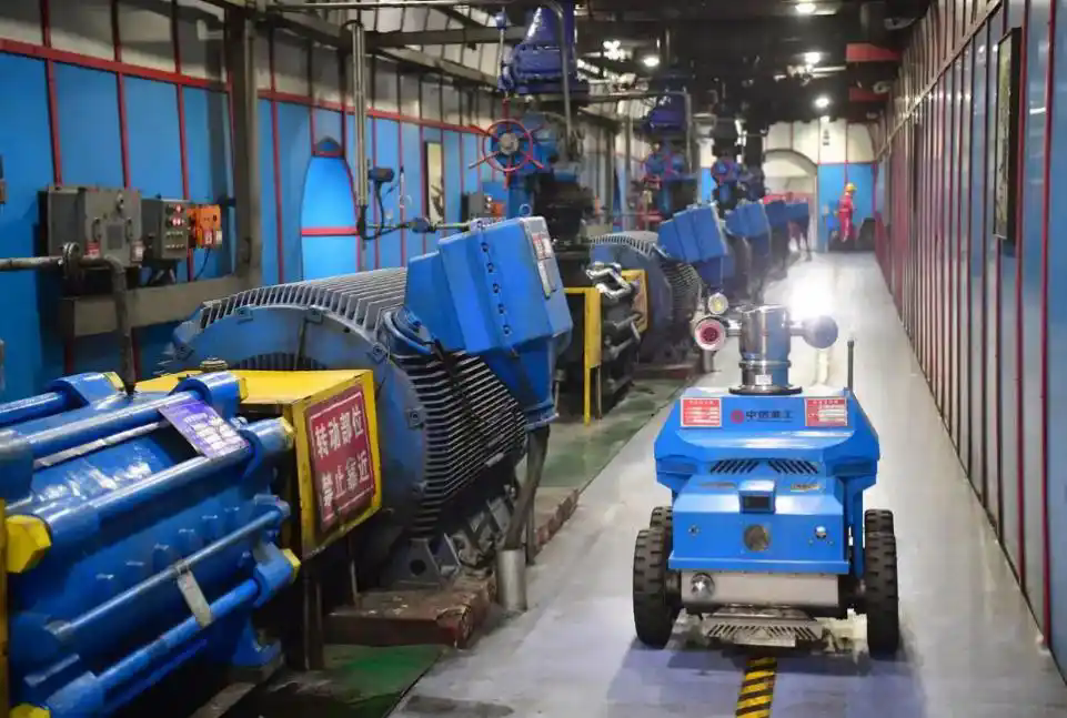 某智慧礦山井下的中央水泵房智能巡檢機器人在巡檢。新華社記者 邵瑞攝