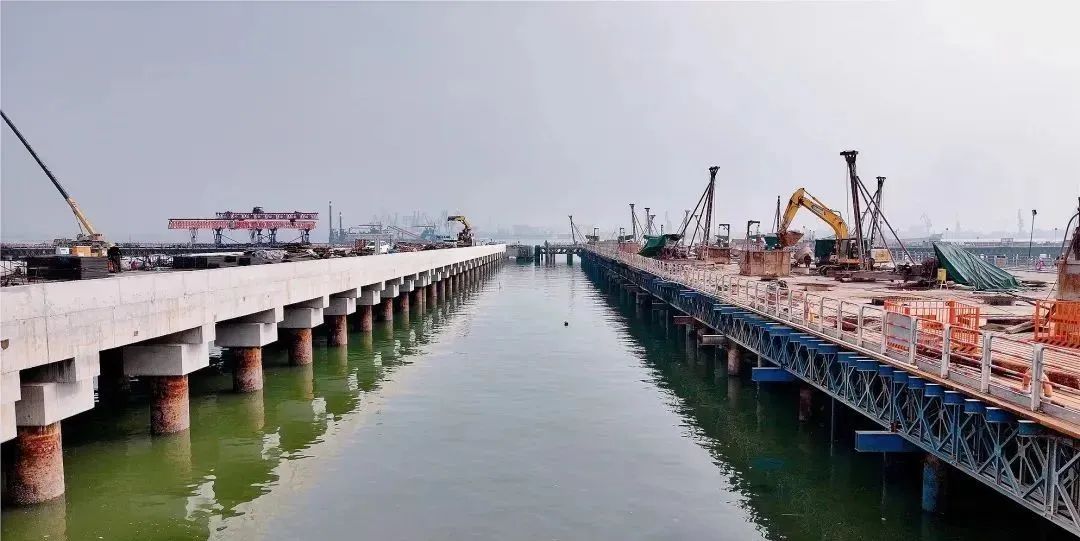 項目負責(zé)人告訴記者,當(dāng)前項目水上施工進展順利,項目團隊正全力以赴進行南北引橋、碼頭灌注樁施工及碼頭鋼平臺的搭設(shè)工作。