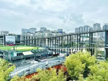 西村大院是一個城市綜合體,大院四面環街,采用外環內空的布局,繞著街道修建環形一圈,圍合形成一個公園般的巨大院落。