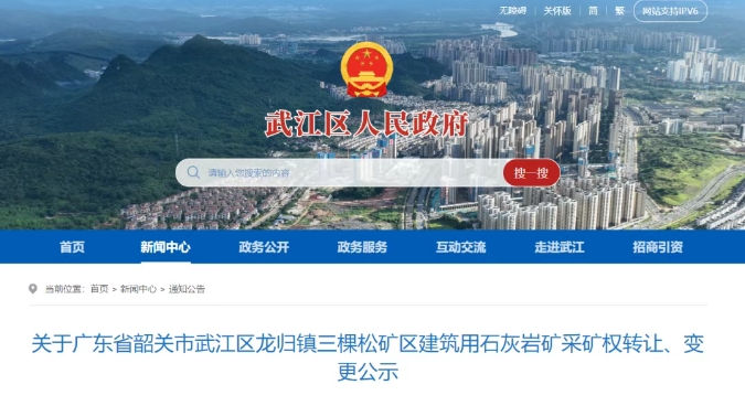 近日,廣東省韶關(guān)市武江區(qū)自然資源局發(fā)布武江區(qū)龍歸鎮(zhèn)三棵松礦區(qū)建筑用石灰?guī)r礦采礦權(quán)轉(zhuǎn)讓、變更公示。韶關(guān)市旅游發(fā)展投資集團(tuán)有限公司將年產(chǎn)1761.5萬噸砂石礦轉(zhuǎn)讓韶關(guān)市綠材投資建設(shè)有限公司。