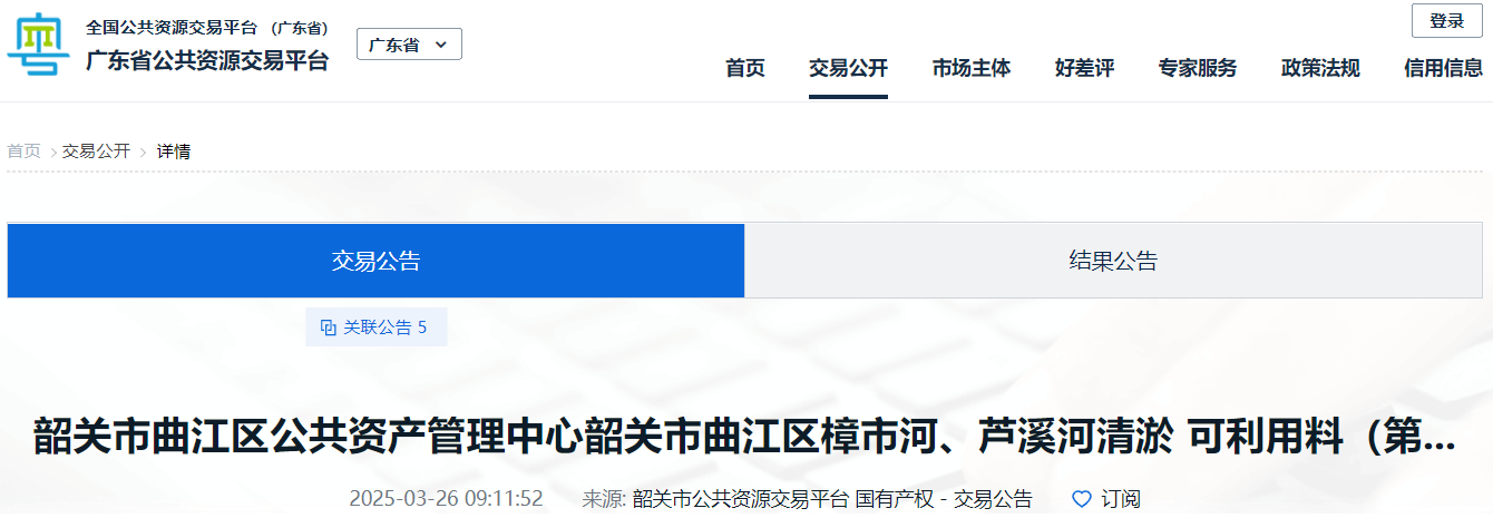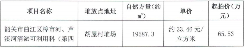 標的名稱:韶關市曲江區樟市河、蘆溪河清淤可利用料(第四批)總方量為136895.6m³(整體拍賣)