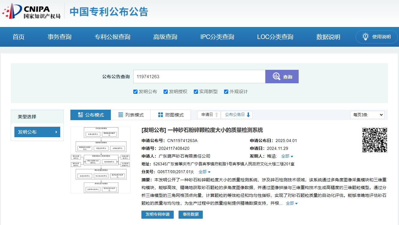 近日,國(guó)家知識(shí)產(chǎn)權(quán)局信息顯示,廣東葫蘆砂石有限責(zé)任公司申請(qǐng)一項(xiàng)名為“一種砂石粉碎顆粒度大小的質(zhì)量檢測(cè)系統(tǒng)”的專利,公開號(hào)CN119741263A,申請(qǐng)日期為2024年11月。