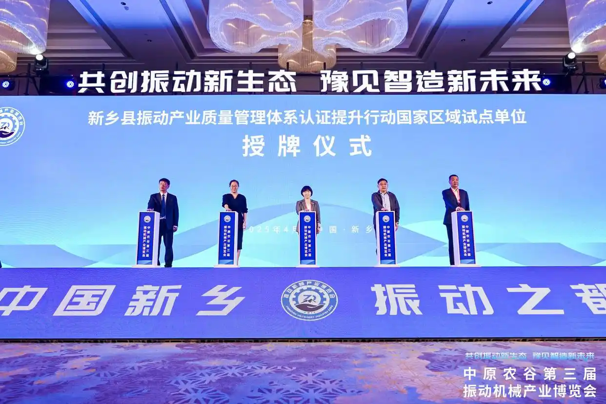 開幕式現(xiàn)場,舉行新鄉(xiāng)振動產(chǎn)業(yè)獲評全省中小企業(yè)特色產(chǎn)業(yè)集群授牌儀式。隨著新鄉(xiāng)市相關(guān)領(lǐng)導(dǎo)登臺按下按鈕,授牌儀式圓滿完成。