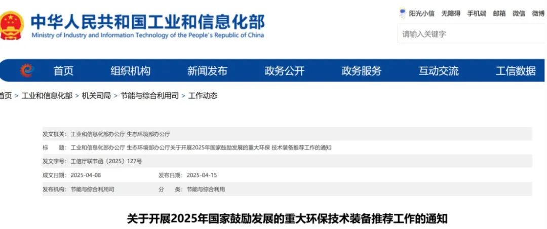《通知》明確了推薦程序,各省級工業和信息化、生態環境主管部門以及有關行業協會、中央企業將組織本地區、本行業環保裝備的研發或生產單位通過 “工業節能與綠色發展管理平臺” 填報申報書,并于2025年7月15日前將正式推薦意見、推薦匯總表通過平臺報送。隨后,工業和信息化部會同生態環境部等有關部門將組織專家進行審核。