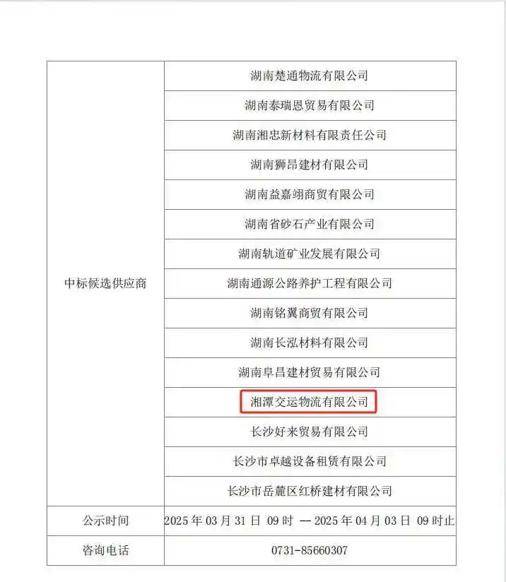 近日,湘潭城發(fā)·交運(yùn)物流在湖南天筑六建混凝土有限公司長沙分公司砂石材料招標(biāo)采購項(xiàng)目中成功中標(biāo),中標(biāo)總體金額約1200萬元。