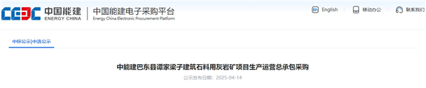 4月14日,中能建電子采購平臺(tái)發(fā)布湖北恩施巴東縣譚家梁子建筑石料用灰?guī)r礦項(xiàng)目生產(chǎn)運(yùn)營總承包采購中標(biāo)公示,中國葛洲壩集團(tuán)路橋工程有限公司以近22億元成功中標(biāo)該項(xiàng)目。