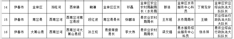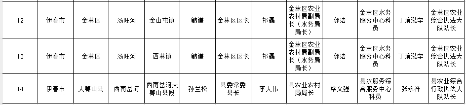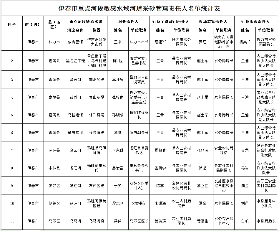 伊春市重點河段敏感水域河道采砂管理責任人名單統計表
